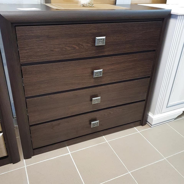 Комод KOM4S Коен венге магія - елемент з чотирма висувними ящиками з модульної системи Коен від фабрики Гербор. За допомогою нього ви звільнитеся від проблеми зберігання не тільки постільної білизни, а й інших речей. Корпус і фасади виготовлені з ламінованої ДСП в кольорі венге магія. це класика в сучасному виконанні і справжнє свято для цінителів стильних і розкішних інтер'єрів. Дуже красивий і благородний колір: венге магія. Як родзинка, стильна алюмінієва ручка з орнаментом посередині фасаду. Направляючі на шухлядах телескопічні.